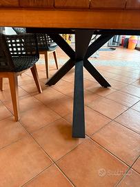 Tavolo giardino in teak e piede scatolato marca Bizzotto completo di poltrone, dondolo in sospensione oltre a dondolo e salotto giardino Bizzotto completo di baule porta cuscini.