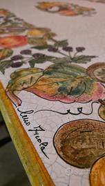 Tavolo Ficola grandi maioliche Deruta in ferro battuto con 2 sedie. Il piano misura 120x70 Altezza da terra 76 cm Ottime condizioni,mai stato all'esterno e mai preso acqua. Possibile consegna a distanza ma da calcolare al momento