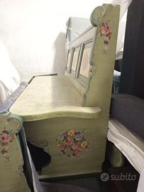 Mobilio artigianale in stile, dipinto a mano tonalità di verde e fiori, per cucina salotto o stube: