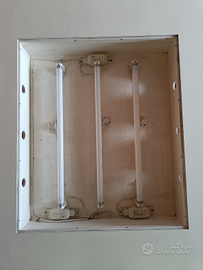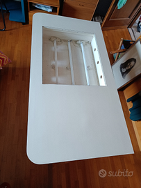 Tavolo da disegno con retroilluminazione composta da tre neon da 18 watt ciascuno, SENZA IL VETRO DI COPERTURA. Utile per disegnatori che necessitano di un tavolo di grandi dimensione con gambe regolabili in altezza e smontabili.