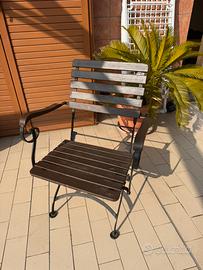 Tavolo grande di legno per terrazze/ giardini (lunghezza 1.80 m o 2.40 m e larghezza 90 cm) + 6 sedie in ferro e legno + in regalo tavolino di legno con sedie incluse