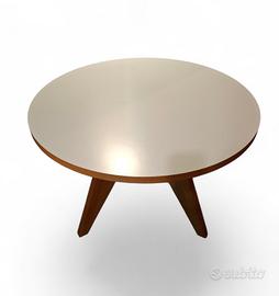 Il Tavolo Gueridon "VITRA" di Jean Prouvé è un pezzo iconico del design vintage. Presenta una base in rovere solida e resistente e un elegante piano bianco rotondo. Creato originariamente nel 1949 per l'Università di Parigi, questo tavolo è ancora oggi prodotto da Vitra, garantendo la sua qualità e durata nel tempo. Con un diametro di 95 cm, questo tavolo è perfetto per inserirsi in ambienti minimalisti ma dal forte impatto visivo.