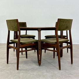 Tavolo di Ico Parisi con finiture in ottone e set di 4 sedie di Eugenio Quarti e Paolo Buffa con struttura in legno e rivestimento in tessuto, anni '50