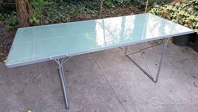 Tavolo Moment di IKEA, progettato dal designer danese Niels Gammelgaard nel 1986, è considerato un pezzo iconico del design postmoderno e industriale. Struttura minimalista in acciaio verniciato e un piano in vetro temperato satinato. Dimensioni : Lunghezza 200 cm, larghezza 85 cm e altezza circa 72 cm. Vinse il premio Excellent Swedish Design. Il ricavato verrà devoluto ad una associazione di beneficenza. Finché disponibile è visionabile presso la sede dell'associazione stessa.