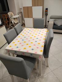 Tavolo Ikea + 6 sedie Ikea sfoderabili! Per le misure è stato allegato nelle foto un disegno! Il tavolo è anche allungabile. Per info e approfondimenti contattare in privato!