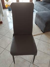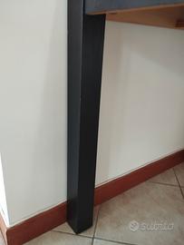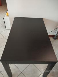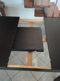 Tavolo Ikea nero, misure 140x84x74, allungabile con doppia prolunga, ciascuna di 80cm, che può essere riposta all'interno del tavolo stesso. Presenza qualche piccolo graffio su una delle zampe ma è in buone condizioni. È possibile prendere anche quattro sedie di colore grigio con copri sedia, ciascuna a 10€.
