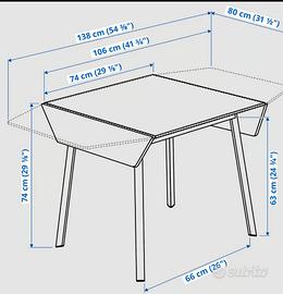 Tavolo allungabile in 3 posti IKEA con top in bamboo, misure 74/106/138x80 cm