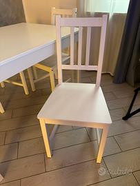 Tavolo di legno bianco 130/190x80 cm allungabile IKEA “EKEDALEN” e quattro sedie bianche di legno IKEA “STEFAN” ottime condizioni. NO perditempo e NO richieste assurde di ribasso del prezzo. Tavolo utilizzato sempre con tovaglia protettiva e le sedie con cuscino a protezione della seduta. Il tavolo è stato smontato mentre le sedie sono intere.