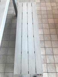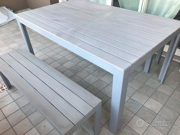 Vendo tavolo legno girgio con struttira in alluminio di colore grigio per 6/8 persone, piu due panche. Pari al nuovo, ottime condizioni. Disponibile anche per consegna a mano, tavolo e panche smontate.
