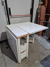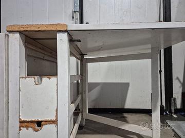 Il tavolo è in legno verniciato bianco, utilizzabile ma molto rovinato. Ci sono solo 2 cassetti su 6.