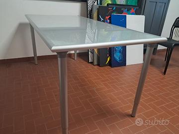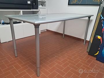 Tavolo in vetro satinato e alluminio, gambe regolabili, misure 157 x 78 cm. In buone condizioni, disponibile a Cambiano - To