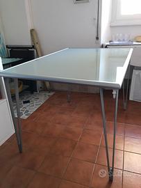 Tavolo Ikea in alluminio e vetro satinato Vika Lauri dim cm. 117 x 78 alto cm 74 con gambe a V in lega leggera Vika Inge facilmente applicabili con una sola vita, tavolo di design fuori produzione come nuovo visibile e ritirabile in zona Trieste E 49 Possibile trasporto su Roma o sud pontino con supplemento di E 10