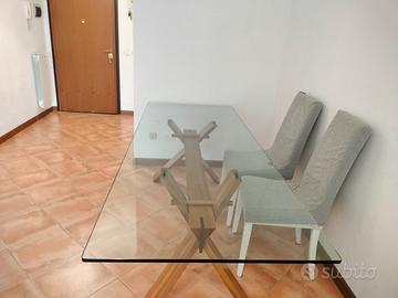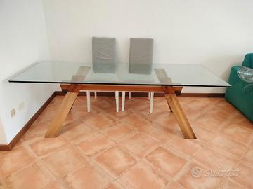Tavolo in cristallo e legno misure 220*85 con piccola scheggiattura. Trasporto a carico dell'acquirente.
