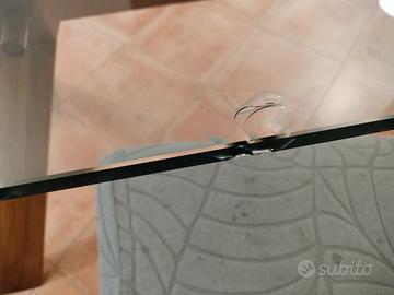 Tavolo il cristallo e legno con piccola scheggiatt