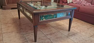 tavolino legno e vetro con antina per inserire oggetti