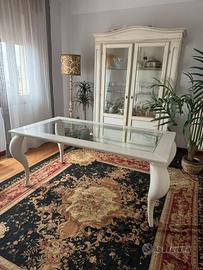Vendo tavolo shabby in legno con il piano in vetro gambe a cipolla mis lung cm 1,80 in largh cm 0’95 euro 300 .