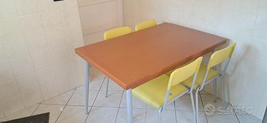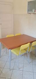 tavolo allungabile in legno ciliegio .gambe in metallo. 120 allungabile fino a 180. larghezza 80. 4 sedie gialle in omaggio. 100 euro