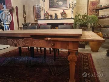 vendo raffinatissimo tavolo in legno allungabile tramite manovella...con la sua particolarità nei disegni e dei dettagli ben accurati lo rende unico nel suo genere.. perfetto in uffici, ristoranti,hotel,sale congressi o ampie sale da pranzo..