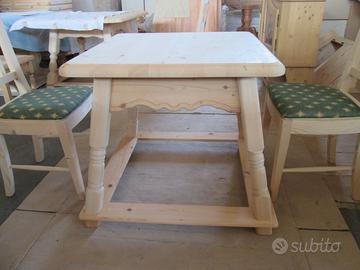 Tavolo massiccio in abete al naturale , misure 80 x 80 del piano . Completo di poggia piedi.