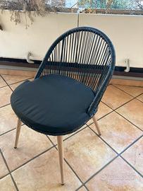 Quattro sedie con cuscini in resina intrecciata nera e metallo effetto legno modello “Isabel”. PREZZO NEGOZIO: 476€ Maison du Monde Ritiro presso il mio domicilio in zona Cassia, altezza via Gradoli. giardino terrazzo balcone esterno industrial