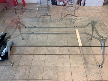 TAVOLO IN ACCIAIO CROMATO E VETRO DI CRISTALLO