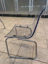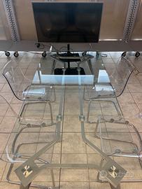 Bellissimo Tavolo in Acciaio Cromato e Vetro di Cristallo ideale come tavolo riunioni per ufficio o sala da pranzo. Lunghezza 210cm Larghezza 90cm Altezza 74cm Spessore vetro 1,5cm INCLUSO NEL PREZZO 4 Sedie IKea serie Tobias in Acciaio cromato e policarbonato trasparente