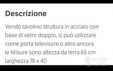 Vendo tavolino struttura acciaio e vetro porta tv, o altro. Salerno centro 35,00 euro salerno centro. Consegna a mano