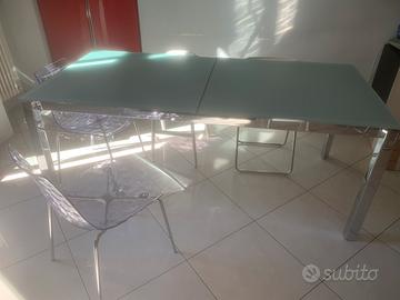 Vendo tavolo in acciaio e vetro temperato lunghezza metri 1,90X90 allungabile fino a metri 2,50 circa tramite estrazione automatica.