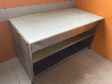 Vendesi numero due tavoli in acciaio inox usati con top in teflon spesso 2,5 cm e ripiano centrale, misure 160/80/H85 cm.