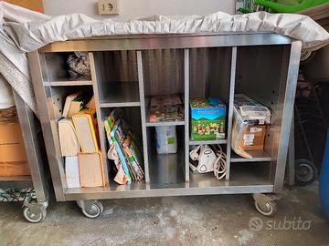 TAVOLO IN ACCIAIO INOX MOLTO SOLIDO E CON RUOTE MISURA CM. 100X70 ALTEZZA CON RUOTE CM 82 SENZA RUOTE CM 72 RITIRO A VICENZA ZONA STANGA UN TAVOLO EURO 250/00 DUE TAVOLI EURO 450/00 N O TRASPORTO