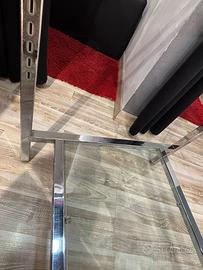 Bellissimo tavolo in stile minimal moderno, acciaio lucido squadrato e due vetri di appoggio di spessore 0,8 mm.