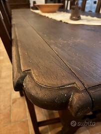 Elegante tavolo da pranzo realizzato artigianalmente in legno di castagno massello, con struttura e dettagli in ferro battuto lavorato a mano. Imponente e scenografico, perfetto per ambienti classici, rustici o country chic.