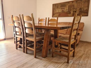 Tavolo di castagno massiccio pesante in ottimo stato lungo cm 200 largo cm 90 alto cm 80, sei sedie impagliate di castagno massiccio in ottimo stato seduta 45x45 cm altezza alla spalliera cm110.