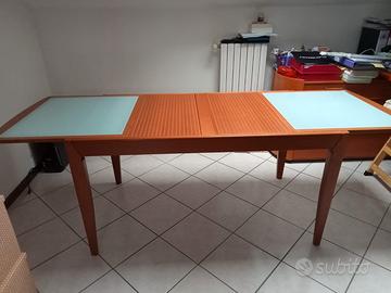 tavolo in ciliegio Calligaris allungabile a tapparella con vetro temperato