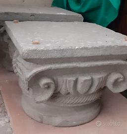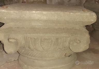 Tavolo di cristallo con capitelli in pietra. Ideale come tavolino da fumo oppure utilizzabili separatamente comw si vuole.