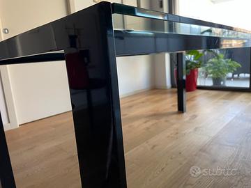 Tavolo laccato nero lucido, con piano in cristallo da 1 cm, misure cm 90x180x72h. E' usato ma ben tenuto. E’ possibile visionarlo prima dell’acquisto. Il ritiro deve essere a carico dell'acquirente (provincia di Brescia) oppure con autotrasportatore di nostra conoscenza con prezzi interessanti. Il trasporto da piano terra a piano terra fino a 20km è di 50€ per questo è stato scontato di tale cifra.
