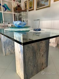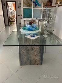 Vendo tavolo in cristallo di 1,80mm di spessore con basi in marmo makauba misura 26 x 59. Lunghezza del tavolo2 m x 1 m larghezza, altezza 77