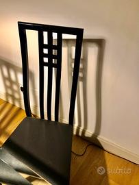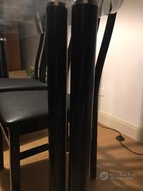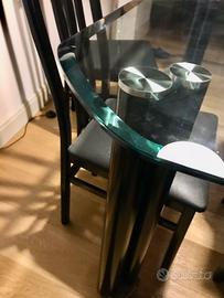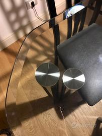 Splendido tavolo Bontempi in cristallo con gambe a doppia colonna nere (svitabili per il trasporto) + 4 eleganti sedie con schienale alto e comoda seduta imbottita. Articoli vendibili anche singolarmente.