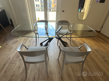 Tavolo in cristallo con le sedie