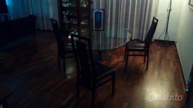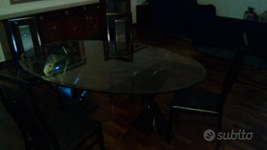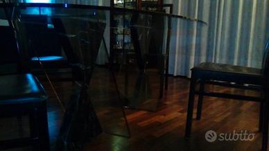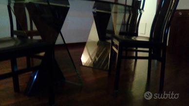 Vendo tavolo in cristallo con piedi in marmo africano e sedie in pelle nera H 80 cm lunghezza 3 ml larghezza ml 1,20