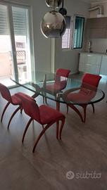 Pregiato tavolo in cristallo con n. 4 sedie marca PORADA in ottimo stato.