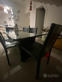 Vendo tavolo in cristallo in buone condizioni con leggeri segni di usura e sei sedie in puro cuoio nero. Per info 3496085767 Sergio