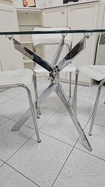 Tavolo in cristallo circolare diametro cm 90 supporto in acciao completo di 4 sedie. Adatto per ambienti privati e uffici Ottimo stato.