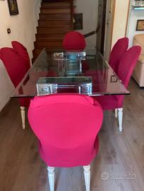 Tavolo in cristallo con sei sedie , basi specchio alcuni specchi da sostituire, sedie da rivestire Affare 250€ tutto