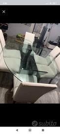 tavolo in cristallo e marmo di Carrara