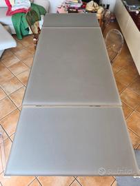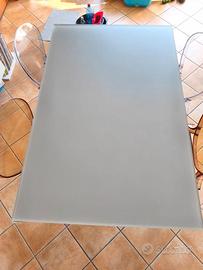 tavolo quasi nuovo di alto valore, in cristallo e gambe in metallo vendo per passaggio a altro modello misure 130cm x 85 cm alto 75 cm si puo' aprire in entrambi i lati, ogni allunga aumenta di 50cm la lunghezza