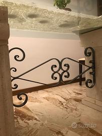 Tavolo in cristallo ,con 6 sedie Callegaris supportato con due colonne in marmo travertino unite tra loro con lavorazione in ferro battuto come si vede da foto .