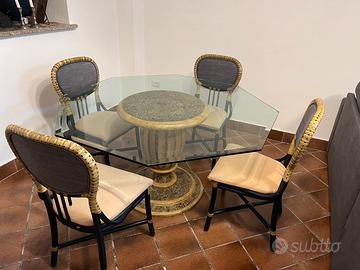 Bellissimo tavolo in cristallo esagonale con base e 4 sedie in midollino .zona torre gaia