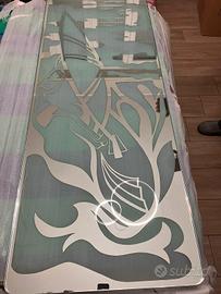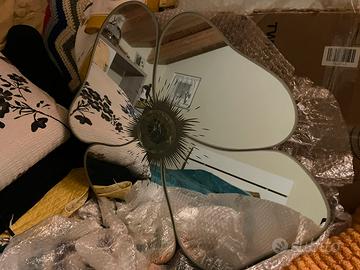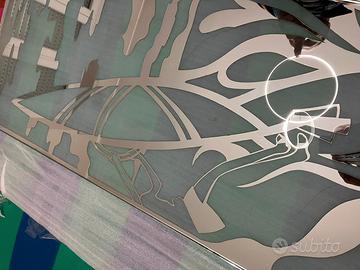 Tavolo in cristallo a specchio originale artista Davico anni 9, pezzi unici con disegni decorativi a mano; possibile appenderlo o usarlo come tavolo da salone. Opera d'arte bellissimo come nuovo. Abbinabile a 2 fiori a specchio con luce centrale anche essi in vetro con decorazioni fatte a mano. Richiedere foto vendita a corpo dei tre pezzi euro 900, valore attuale di oltre 3000 euro. Come opere si rivalutano nel tempo come unicità. Opere Certificate dall’autore. Pezzi unici introvabili! Vendo per difficoltà finanziarie.