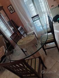 Vendo tavolo in cristallo con colonne in pietra Leccese bianca da 6/8 persone misure : Lunghezza mt 2.50 Larghezza mt 1.00 N
